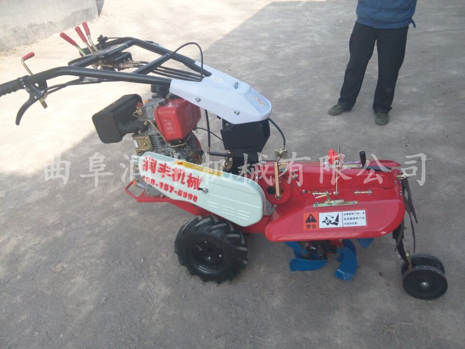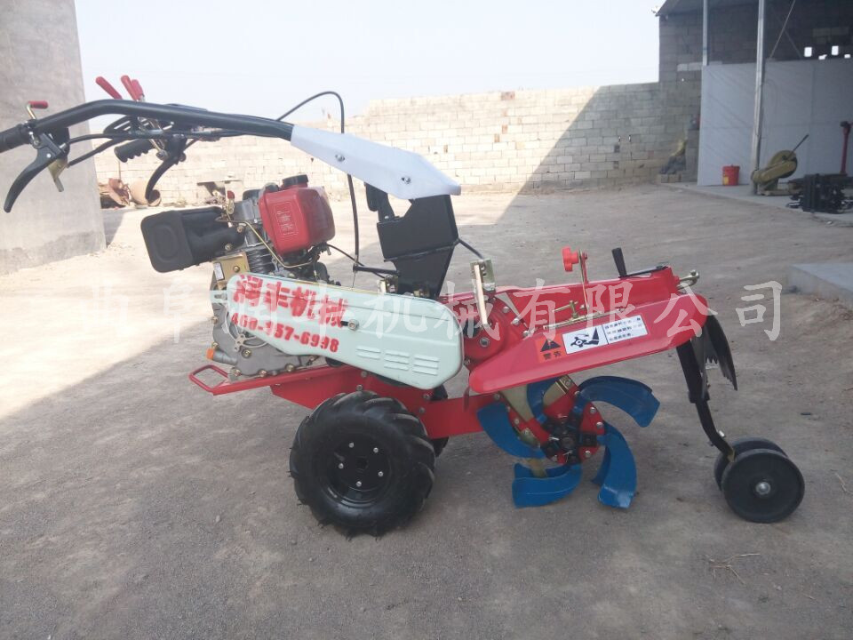 雙輪田園管理機,它包括機架、可調高低扶手,機架上設有(風冷或水冷)柴油機或汽油機、機架和扶手上設置有變速箱,變速箱的輸出軸上設置有能夠沿軸移動的驅動輪或鏈軌.傳動方式主要有:全齒輪傳動、皮帶傳動、鏈條傳動三種傳動方式.該機具有重量輕,油耗低、相對功率大,結構緊湊、機動性強、操縱輕便靈活的特點。可爬坡、越埂、階梯性強。廣泛適用于平原、山區、丘陵的旱地、水田、果園、菜地、煙地的深旋耕、淺旋耕、犁耕。配上相應機具可進行旱地旋耕、水田旋耕、抽水、開溝、噴淋、噴藥除草碎土等作業,還可牽引拖車進行短途運輸,是大中型農機無法媲美的多功能田園管理機,工作穩定可靠、使用壽命長、維修方便等特點。是進入農民家庭最理想的田園管理機。