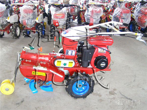 雙輪田園管理機(jī),它包括機(jī)架、可調(diào)高低扶手,機(jī)架上設(shè)有(風(fēng)冷或水冷)柴油機(jī)或汽油機(jī)、機(jī)架和扶手上設(shè)置有變速箱,變速箱的輸出軸上設(shè)置有能夠沿軸移動(dòng)的驅(qū)動(dòng)輪或鏈軌.傳動(dòng)方式主要有:全齒輪傳動(dòng)、皮帶傳動(dòng)、鏈條傳動(dòng)三種傳動(dòng)方式.該機(jī)具有重量輕,油耗低、相對功率大,結(jié)構(gòu)緊湊、機(jī)動(dòng)性強(qiáng)、操縱輕便靈活的特點(diǎn)。可爬坡、越埂、階梯性強(qiáng)。廣泛適用于平原、山區(qū)、丘陵的旱地、水田、果園、菜地、煙地的深旋耕、淺旋耕、犁耕。配上相應(yīng)機(jī)具可進(jìn)行旱地旋耕、水田旋耕、抽水、開溝、噴淋、噴藥除草碎土等作業(yè),還可牽引拖車進(jìn)行短途運(yùn)輸,是大中型農(nóng)機(jī)無法媲美的多功能田園管理機(jī),工作穩(wěn)定可靠、使用壽命長、維修方便等特點(diǎn)。是進(jìn)入農(nóng)民家庭最理想的田園管理機(jī)。