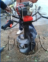由小型通用汽油機(jī),超越離合器,高減速比傳動(dòng)箱及特殊設(shè)計(jì)的鉆具組成適合于<各種坡地、沙地、硬質(zhì)土地、凍土地的植樹造林或果樹種植,道路兩側(cè)綠化植樹等。苗木種植挖穴,畜牧圍欄埋樁挖穴;葡萄胡椒種植埋樁挖穴;果樹、林木施肥挖穴。鉆頭直徑(mm):80 100 150 200 250 300 400mm
