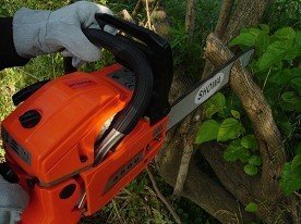 我國林區手持式采伐主導機械。 油鋸減震系統采用彈簧與高強度的減震橡膠減震。鏈輪形式為正齒,使裝配鏈條更加簡潔、方便!