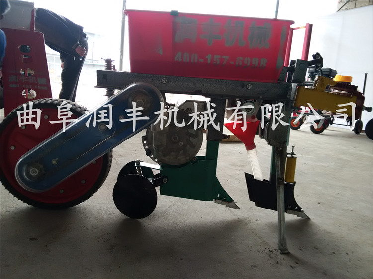 簡介:可以點播小麥、黃豆、紅豆、豌豆、玉米、蠶豆等顆粒狀種子。可以同時施肥、播種,下種量、下肥量、播種深度可以調節,一天一個人,持一臺機器,可以施肥播種6-8畝,是人工刨坑播種的3-5倍,不要油、不要電、純人力機型,操作簡單,幾分鐘就可以學會,機器保修一年(人工損壞除外),本機放棄了傳統人工彎腰刨坑播種的辛苦模式,直接將化肥和種子一次性注入土壤,種子和化肥隔開5公分,化肥還比種子深一公分,保證絕對不燒種。,而且施肥播種能夠保持深淺一致,比傳統刨坑播種具有出苗整齊、輕松高效的特點。
