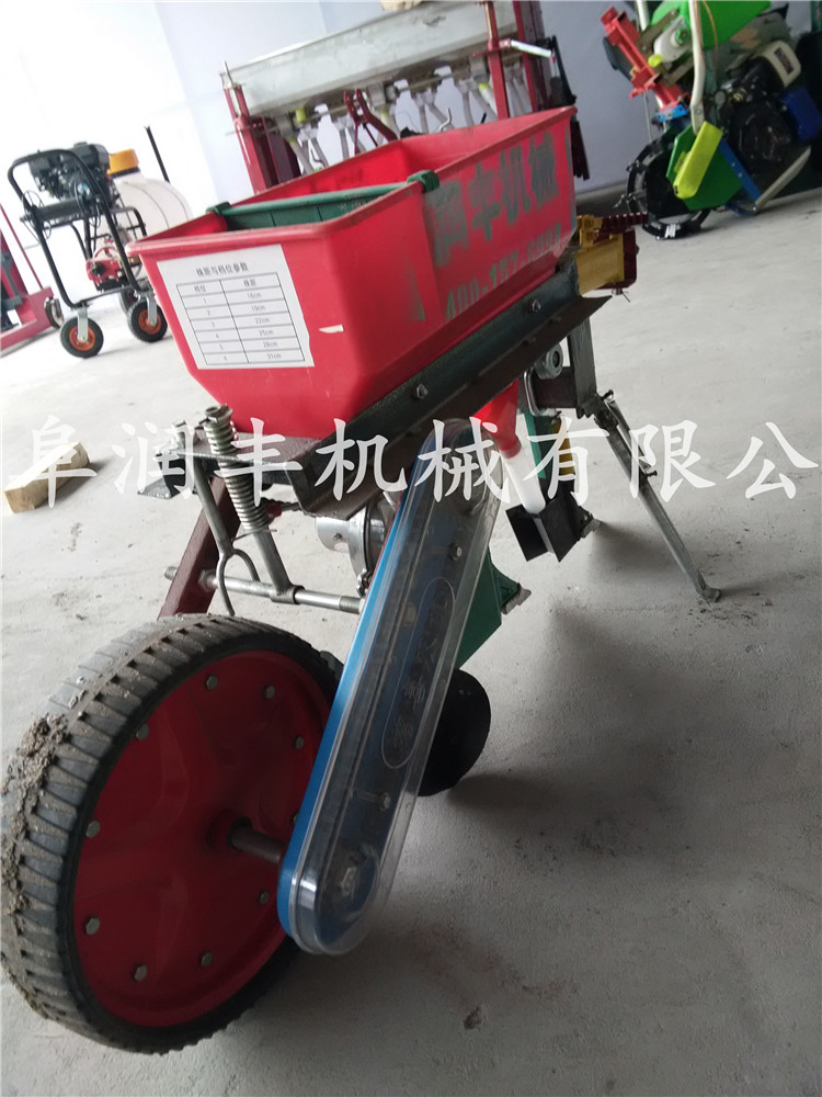本機器可以播種:小麥、黃豆、紅豆、豌豆、玉米、蠶豆等顆粒狀種子。可以同時施肥、播種,下種量、下肥量、播種深度可以調節