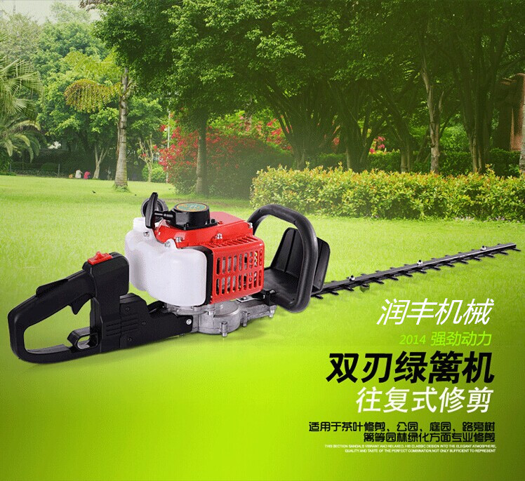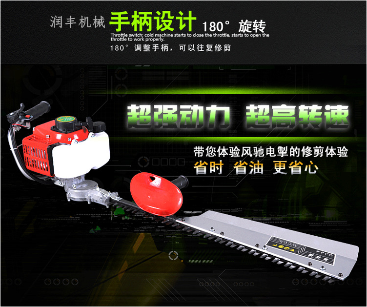 既可用于園林綠化養護、園藝造景的修剪綠籬,草坪修剪;還可修剪球形樹籬、清除雜草和灌木叢、收割牧草 修剪(冬青、黃楊、檜柏、刺柏、蜀檜、紫薇、茶葉樹)。在草坪的平整度、傾斜度、草坪的寬窄度達不到要求,推車式草坪機無法正常作業的情況下,消除作業“死角”。 單人每天可修剪6畝,相當于6人用剪刀修剪1天的工作量;操作手只需略為調整刀盤的角度,既可保正修剪后綠籬蓬面的任意傾斜角度造型;