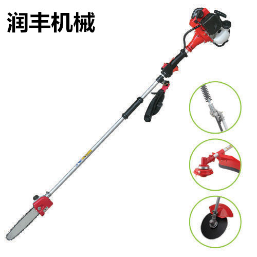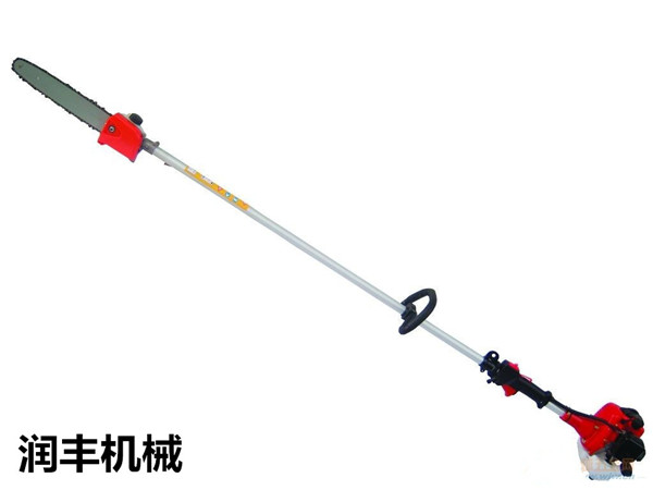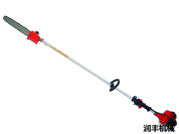 高枝油鋸用于森林采伐、造材、打枝等以及木場造材、鐵路枕木鋸截等作業。尤其適用于高處危險之地的修剪.該產品具有功率大、振動小、鋸切效率高、伐木成本低等諸多優點。已成為我國林區手持式采伐主導機械。該產品可任選其中一個工作頭,如割草機頭、割灌機、高枝油鋸、綠籬剪四種用具。此產品攜帶方便,使用簡單,具有此四種功能,可選購多功能高枝產品,四合一,三合一產品。 汽油機型號:1E34F 汽油機形式;單缸、風冷、二沖程 額定功率:0.7kw/6500rpm 最大扭矩:1.1N.M/5500rpm 排量:30cc 缸徑x行程:Φ36.5x28.5mm 修剪長度:500mm 凈重;6kg 毛重:8kg 。