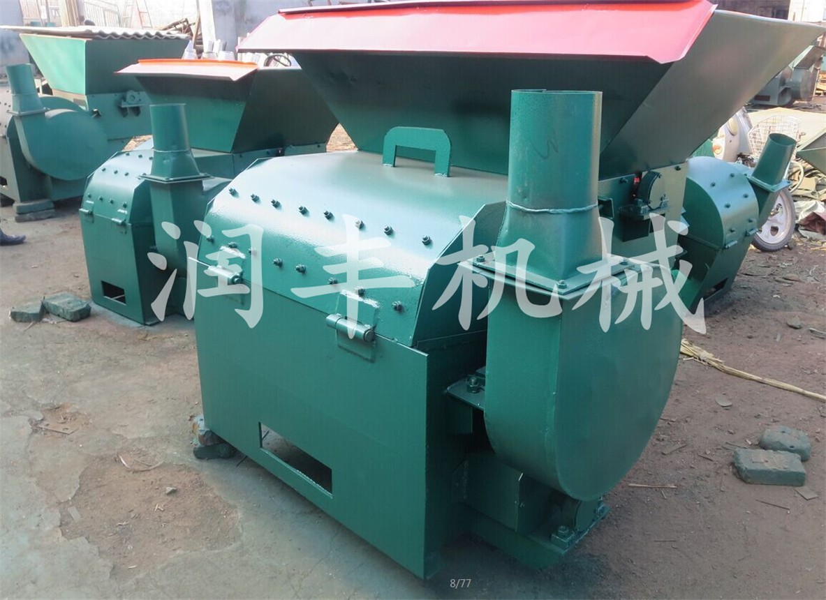 該機器是機殼一端配以滾動軸承主軸,由電機帶動主軸及緊固在主軸上的渦輪高速旋轉。 使渦輪與篩網圈上的磨塊組成合理、緊湊的結構,使物料在旋轉氣流中緊密地磨擦和強烈的沖擊研磨,并在葉片與磨塊之間的隙縫中,進行再次研磨,通過篩網的調節使物料粉碎至1-50mm之間。通俗地講,是物料通過與本機相配的喂料機構由頂部喂入,在高速旋錘片打擊和篩板磨擦作用下,物料逐漸被粉碎,并在離心力的作用下,穿過1-50mm的篩孔由風機提入沙克龍中從沙克龍底座出料口排出。“潤豐”牌玉米秸稈粉碎機結構緊湊合理、體積小、耗能低,效率高,轉動平穩,噪聲低,密封可靠,無粉塵污染,自冷功能良好,安裝簡單,易拆易修,調換損件方便!本機器主要適用于中低硬度物料的粉碎,能粉碎粒狀的如玉米、高梁、麥類、豆類、餅類的精飼料;也可將塊狀的如牧草、干雜草、地瓜秧、花生秧、玉米秸、干谷秸等粉碎成粗飼料;應用于農村中小型養豬場、養豬專業戶和副業加工戶是一種最理想、最有效、最經濟的設備。