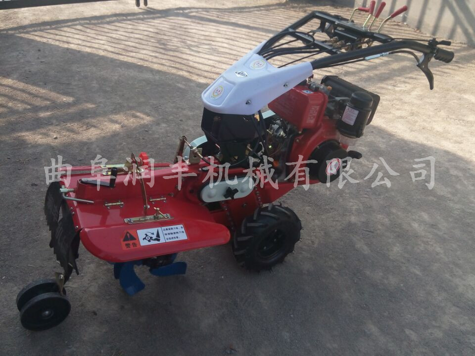 雙輪田園管理機(jī),它包括機(jī)架、可調(diào)高低扶手,機(jī)架上設(shè)有(風(fēng)冷或水冷)柴油機(jī)或汽油機(jī)、機(jī)架和扶手上設(shè)置有變速箱,變速箱的輸出軸上設(shè)置有能夠沿軸移動(dòng)的驅(qū)動(dòng)輪或鏈軌.傳動(dòng)方式主要有:全齒輪傳動(dòng)、皮帶傳動(dòng)、鏈條傳動(dòng)三種傳動(dòng)方式.該機(jī)具有重量輕,油耗低、相對(duì)功率大,結(jié)構(gòu)緊湊、機(jī)動(dòng)性強(qiáng)、操縱輕便靈活的特點(diǎn)。可爬坡、越埂、階梯性強(qiáng)。廣泛適用于平原、山區(qū)、丘陵的旱地、水田、果園、菜地、煙地的深旋耕、淺旋耕、犁耕。配上相應(yīng)機(jī)具可進(jìn)行旱地旋耕、水田旋耕、抽水、開(kāi)溝、噴淋、噴藥除草碎土等作業(yè),還可牽引拖車(chē)進(jìn)行短途運(yùn)輸,是大中型農(nóng)機(jī)無(wú)法媲美的多功能田園管理機(jī),工作穩(wěn)定可靠、使用壽命長(zhǎng)、維修方便等特點(diǎn)。是進(jìn)入農(nóng)民家庭最理想的田園管理機(jī)。