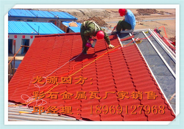 彩石面金屬瓦是以優質壓型彩鋼板為基板,以優質水性高分子樹脂為粘合劑,以彩色天然石粒為面層,經特殊工藝加工制成的新型高級屋面材料。在北美、歐洲、澳洲、東亞建筑中已普遍應用,產品已經遠銷到包括日本,美國,歐洲,南非等數十個國家和地區,并取得了優異的成績和卓越的口碑,受到廣大海內外經銷代理商一致好評。近年來在我國沿海經濟發達地區的高中檔樓盤和風景名勝區建筑上也多有采用,將成為國內屋面材料的主流產品,在中國市場我們推出五種款式的金屬瓦,包括方格型、圓弧型、彩虹型、斜邊型、木紋型每種款式有包括海洋藍,古樹棕,中國紅,沙漠金,烏碳黑等十多種顏色可選。其基材為0.4-0.45mm鍍鋁鋅鋼板, 表面經UV鍍膜天然玄武巖彩色石粒,鋼板背部附有耐指紋膜!隔熱保溫,防腐防銹,產品無論是款式,色彩以及耐久性方面,都能夠很好地滿足各種建筑風格及客戶的需求。