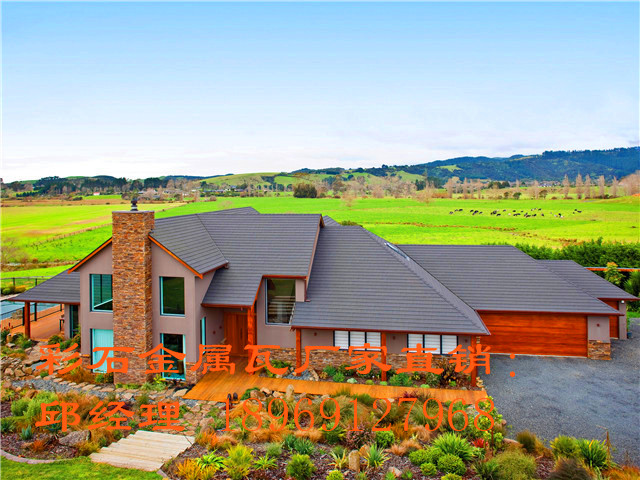 彩石金屬瓦是由鍍鋁鋅鋼板作為基材、彩色砂粒、底漆和丙烯酸樹脂構(gòu)成。其中鍍鋁鋅鋼板基材是由55%鋁,43.4%鋅和1.6%硅組成的電鍍液經(jīng)電鍍而成的,其加工性、涂裝性與鍍鋅鋼板基本相同。彩色砂粒是金屬瓦的裝飾層及基層保護(hù)層,它是由一定粒徑的顆粒經(jīng)高科技著色工藝和高溫烤制而成的。具有十多種顏色,可耐紫外線照射,能減輕雨水給金屬瓦造成的噪音,使彩色鋼板瓦色彩豐富莊重,裝飾性更好,這是一般彩色壓型鋼板所不具備,也是不能比的。底漆作為瓦的特殊材料,它是使鍍鋁鋅鋼板與彩色砂粒進(jìn)行良好粘結(jié)的材料,作用大。而丙烯酸樹脂作為表面的保護(hù)層,防止細(xì)部雨水滲漏,能延長砂粒色彩的壽命。