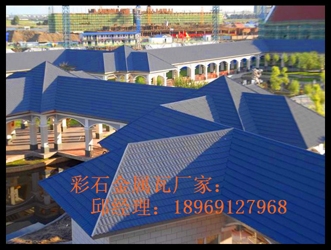 金屬瓦表面彩砂為高溫燒結彩砂,產品歷久如新,經雨水沖刷不掉色。