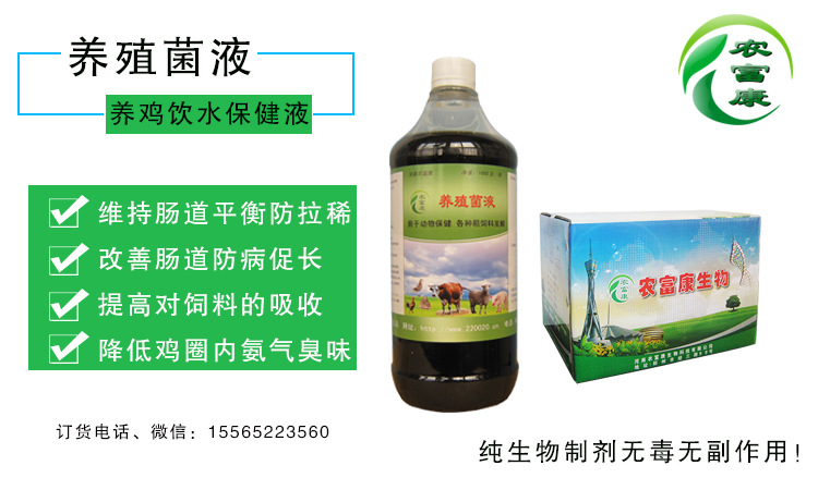 農富康養殖菌液是一種專門給雞飲用的飲水保健液,暢銷全國十二年,積累了36萬的新老用戶,其內含多種有益菌群,進入腸道內能有效的消滅腸道內的雜菌,提高腸道的吸收能力和抗病能力,杜絕雞的各種胃腸疾病的發生,這樣的雞拉得少、長得快、不容易生病。
