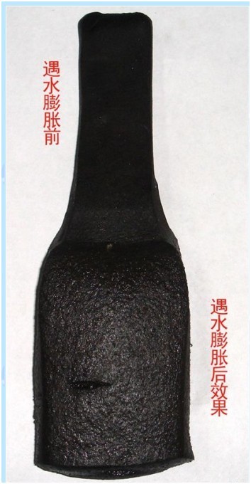 該產品具有彈性接縫止水材料的密封防水作用,當接縫兩面側距離加大到彈性防水材料的彈性復原率以外時,由于該材料具有遇水膨脹的特性.在材料膨脹范圍以內仍能起止水作用,膨脹體仍具有橡膠性質,更耐水,耐酸,耐堿.膨脹速度緩慢,抗水壓能力強,施工方法簡便,適用于雨季和水豐富的施工工地使用.