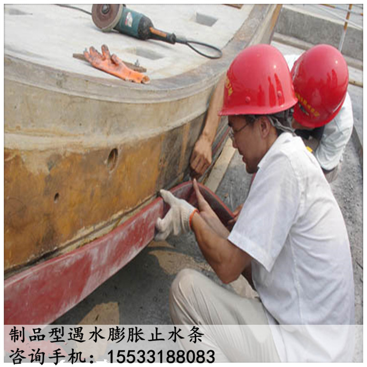 (2)止水條安裝部位確定后,在需安放止水條的界面上和止水條的底面元?dú)馔可媳”∫粚幽z粘劑,待粘液揮發(fā)一段時間后再進(jìn)行粘貼,或用高強(qiáng)度錨釘將止水條固定在安裝的部位。