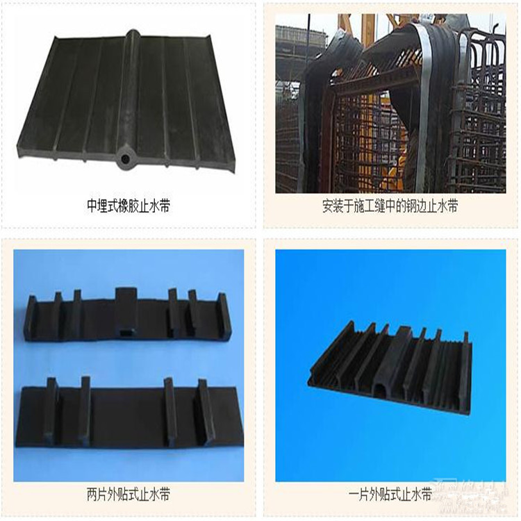鋼邊橡膠止水帶是以可伸縮的橡膠和鍍鋅鋼帶組成的復合件。 這種止水帶主要靠中間的橡膠段在混凝土間被壓縮,而起到密封止水作用。一般來說,混凝土和橡膠的粘附力較差,在常規施工中,又因橡膠是柔軟彈性體,使混凝土在澆筑時不易被搗實,故在混凝土干縮時會經常出現橡膠止水帶松動或脫落,以致在水頭壓力較高情況下會產生滲漏現象。對于變形縫大的接縫來說,就更為突出。采用鍍鋅鋼帶橡膠組合止水帶,基本上可以克服純橡膠橋式止水帶的這些不足。因為這種組合式止水帶具有雙重功能:一方面可以延長滲徑,延緩滲水速度,另一方面鍍鋅鋼帶和混凝土有著良好的粘附性,使止水帶能承受較大的拉力和扭力,從而保證橡膠止水帶在混凝土中的有效變形范圍內不會產生松動和脫落現象,提高止水效果。 施工安裝 通常鋼邊邊緣設有安裝孔,安裝澆筑混凝土時,利用安裝孔將止水帶和鋼筋用細鐵絲纏繞固定,以保證不發生位移,使鍍鋅鋼片和混凝土有效地牢固粘附。