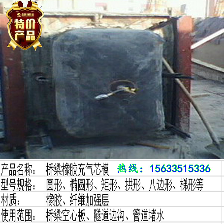 充氣芯模又叫橋梁充氣芯模,橡膠充氣芯模,是一種可膨脹、收縮的圓柱袋子,由橡膠與纖維加強層硫化而制成,具有很高的抗張強度,彈性和氣密性,用來形成混凝土構件的空腔,在制造空心構件時,將它放入中間,并充入壓縮空氣,充氣膨脹后具有足夠的強度來承受混凝土的壓力,能代替原有的木模、竹模、鋼模,打開閥門膠囊即收縮,并可以從空腔中抽出膠囊。