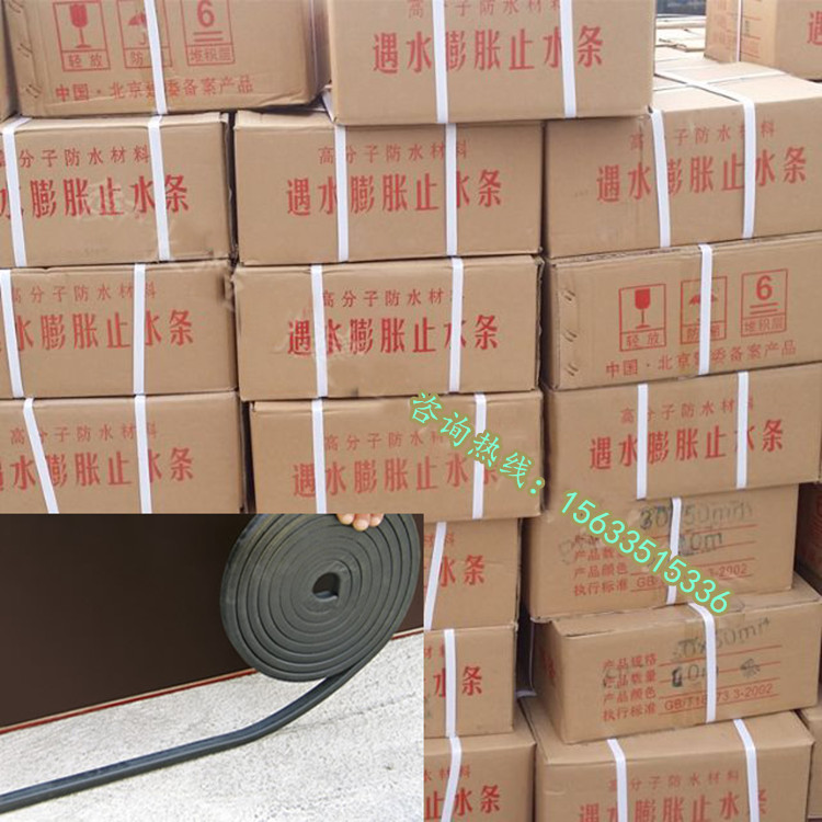 制品型遇水膨脹止水條是一種新型止水產品,它經過硫化成型,但和一般橡膠制品不同,它具有優良的回彈性,延伸性。又有彈性密封止水作用。它可以遇水膨脹,以水止水,使它的止水效果比一般防水材料更為可靠。本產品執行標準:GB/T18173.3-2002