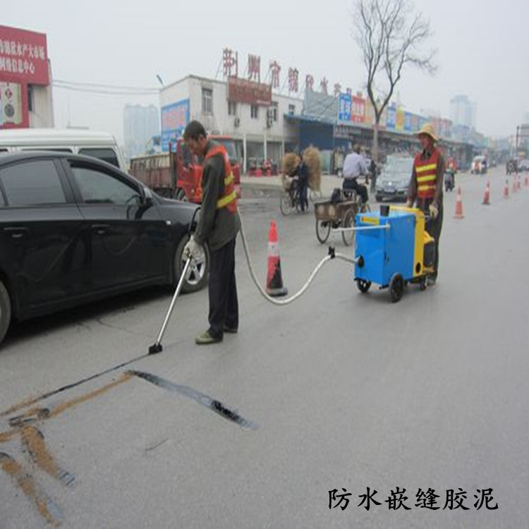 3、將聚氯乙烯膠泥成品切成2kg左右的小塊投入鍋內,緩慢升溫,不斷攪拌,熔化時溫度應控制在120℃,最高溫度不超過160℃,保持填縫不起泡,不冒黃煙、濃煙。如發現上述現象,應立即退火,加速攪拌,熔好的填縫料可隨時取用并加補新料,連續作業。應避免長時間的加熱煎熬,以防填縫料性能發生變化。熔化好的填縫料應立即用壺往縫內澆注,填縫料與路面齊平,多余的料尖用鏟刀清除,以保持行車舒適。