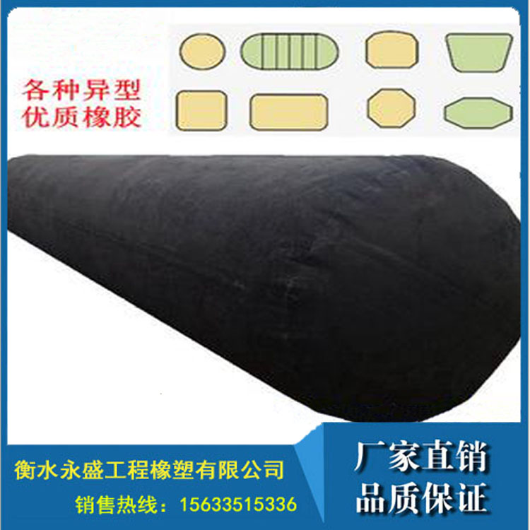 本產品采用天然橡膠與防拉布熱壓硫化一次成型,是橋梁工程和隧道工程中成孔模具的最佳產品之一,它屬于柱形,橫斷面有多種型號,矩形的、八邊形的、橢圓形的、圓形的、冠形的、還有倒梯形等多種形狀,根據施工單位的設計圖紙做成相應的柱體。