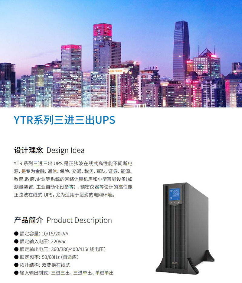 當前位置: 首頁 » 供應(yīng)產(chǎn)品 » 電工電氣 » 電源 »科華 YTR3115 ups電源15KVA/10.5KW 三進單出 外置電池 長效機