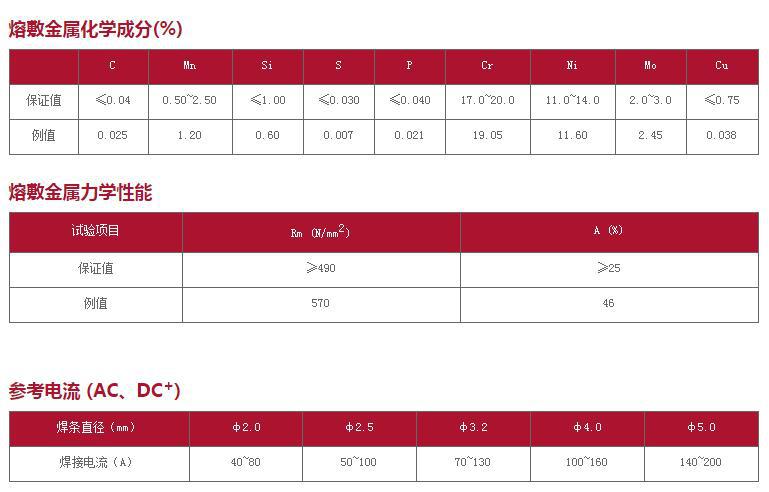 用于超低碳022Cr18Ni12Mo3不銹鋼,也可用于焊后不能進行熱處理的鉻不銹鋼及復合鋼和異種鋼的焊接。