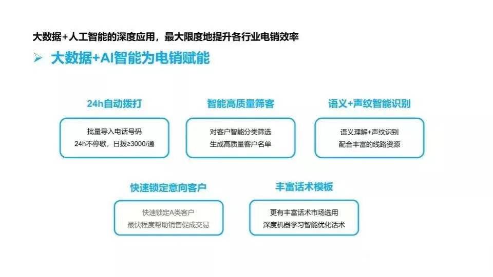 1、機器人一天可以撥打成千上萬通電話,可以大批量地、快速地為我們篩選出意向客戶。