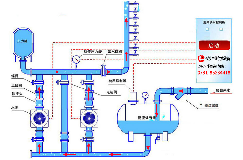 1.適用地域范圍:適用于城市管網壓力較充足的地區加壓給水