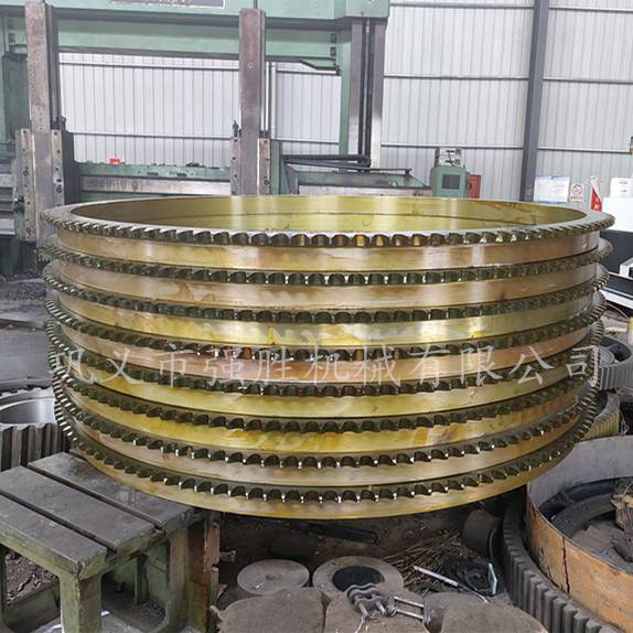 烘干機大齒輪裝在烘干機筒體上,把傳動部分的動力傳遞到筒體,使筒體安裝設(shè)定的轉(zhuǎn)速平穩(wěn)的轉(zhuǎn)動,是整臺設(shè)備中的受力部件之一。因此,要求齒輪材料具有較高的***性和足夠的強度,并進行一系列的正火回火處理,齒面布氏硬度不低于170。常***zg45、zg35crmo、zg35simn、zg42crmo等幾種材質(zhì)加工。
