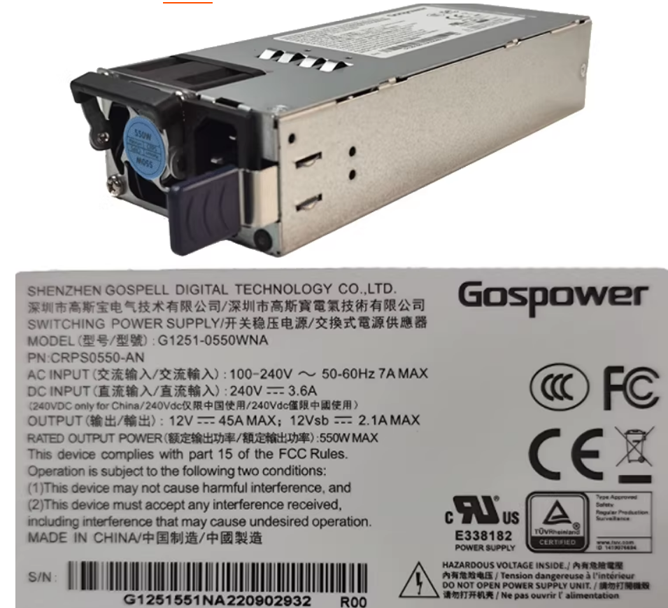 Gospower G1251-0550WNA 550W 服務器冗余電源模塊 高斯寶開關穩壓電源