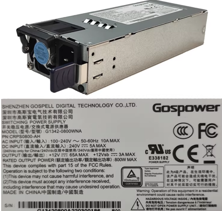 Gospower G1342-0800WNA 800W 高斯寶服務器冗余電源模塊 交換式電源供應器