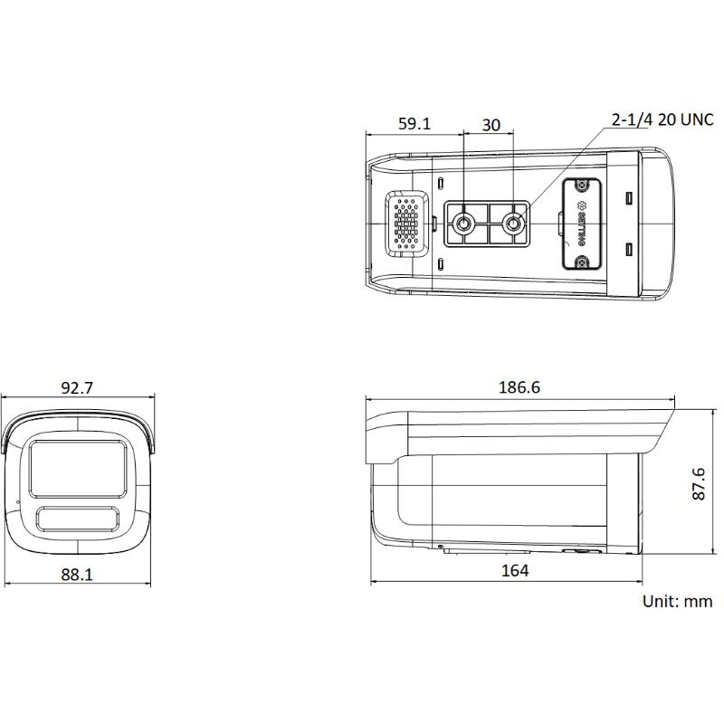 DS-2CD2T67SFWDA4-LS ??低?00萬智能全彩筒型網絡攝像機 產品尺寸: