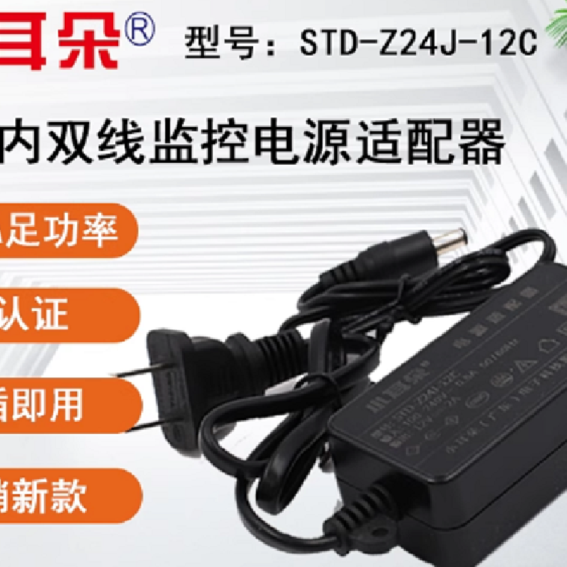 STD-T2X-A STD-Z24J-12C 12V 2A 小耳朵室內雙線監控電源適配器