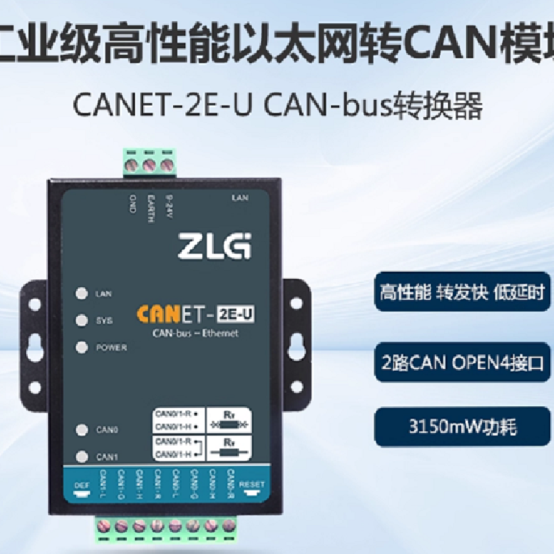 ZLG CANET-E-U CANET-2E-U CANET-4E-U 400U 工業級以太網轉CAN模塊