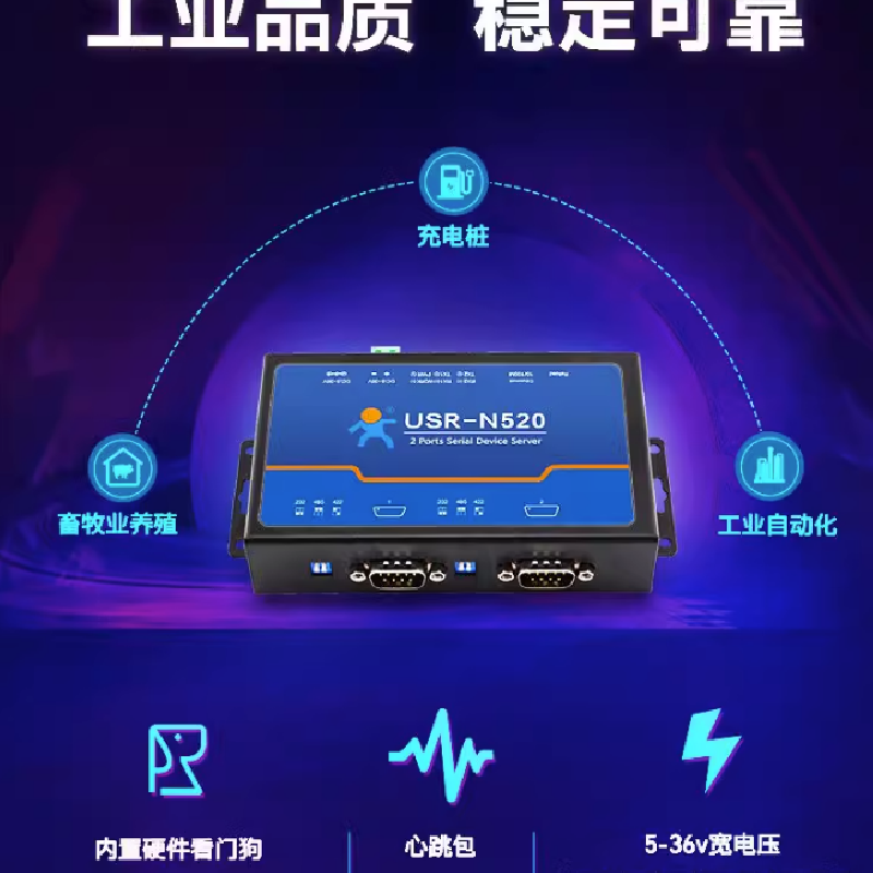 USR-N520-H7 雙串口服務器RS232/485/422轉以太網工業通訊
