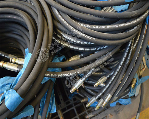 高壓鋼絲編織膠管主要由耐液體的內膠層、中膠層、2或4或6層鋼絲纏繞增強層、外膠層組成,內膠層具有使輸送介質承受壓力,保護鋼絲不受侵蝕的作用,外膠層保護鋼絲不受損傷,鋼絲(φ0.3--2.0增強鋼絲)層是骨架材料起增強作用。
