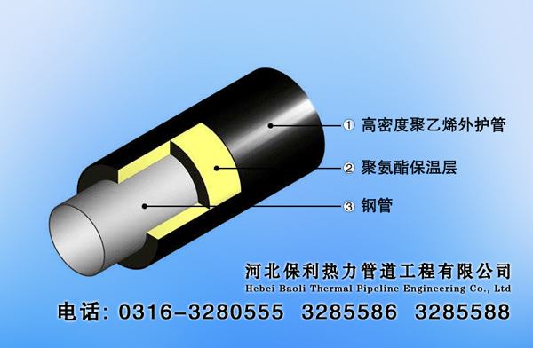 聚氨酯直埋保溫管具有高效保溫、防水、防腐、絕熱、隔音、阻燃、耐寒、防腐、容量輕、強度高、施工簡便快捷、不怕植物根刺等優(yōu)異特點,已成為建筑、運輸、石油、化工、電力、冷藏等工業(yè)部門絕熱保溫、防水堵漏、密封等不可缺少的材料。直埋保溫管用于室內(nèi)外各種管道,集中供熱管道,中央空調(diào)管道、化工、等工業(yè)管道的保溫、保冷工程、輸油管道工程、輸汽等管道工程。 直埋保溫管道能在0.6-1.2米凍土層內(nèi)直埋熱損失比普通的管道可降低40%以上,工作使用壽命比其它絕熱防腐材料提高3-5倍以上,壽命可以達到30-50年。