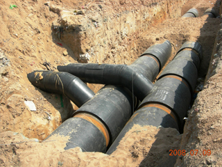 4.聚氨酯直埋保溫管占地少,施工快,有利環(huán)境保護。直埋供熱管道不需要砌筑龐大的地溝,只需將保溫管埋人地下,因此大大減少了工程占地,減少土方開挖量約50%以上,減少土建砌筑和混凝土量90%。同時,保溫管加工和現(xiàn)場挖溝平行進行,只需現(xiàn)場接頭,可以縮短工期約50%以上。