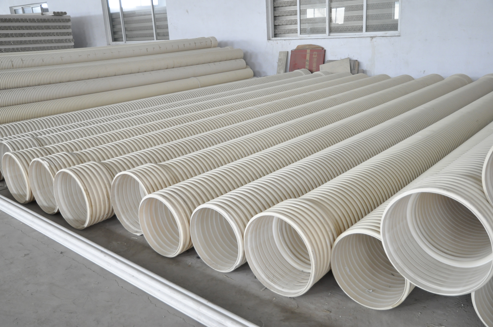 PVC-U雙壁波紋管是以聚氯乙烯為主要原料加工生產(chǎn)的內(nèi)壁光滑、外壁波紋,內(nèi)外壁中空的特殊管材。