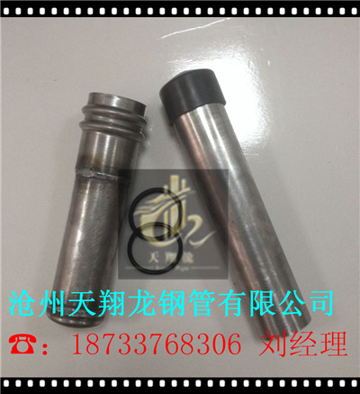 天翔龍聲測管的上口端。橡膠密封圈受擠壓后起到密封作用鉗壓部位插口和承插口端的管材同時收縮變形起定位固定作用,從而有效地實現側管的連接。密封的原理:橡膠O型圈徑向收縮抱緊,拔原理;壓部位變形,中間小兩頭大;旋轉原理:鉗壓成六角形,不能旋轉
