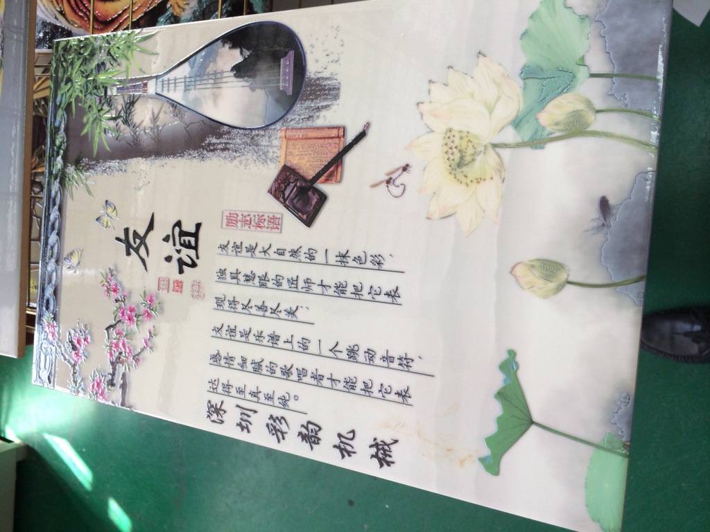 2、可兼容不同行業,不限材質,不會造成材質的損壞。裝飾玻璃印花機不僅可以在質地堅韌的水晶、石材、金屬、玻璃等材質上印刷,而且也可以在質地松軟的皮革、布料、棉質等物料上印刷;它可以在無機物上印刷,也可以在成分復雜,變化多端的有機物上印刷。對材質有了更多更好的兼容,使用裝飾玻璃印花機避免了絲網印刷、水轉印選材質的問題,也避免了熱轉印對皮革、布料、棉料等有機物材質的破壞問題。裝飾玻璃印花機迎合了市場多元化的需求,能更好的為用戶提供更為全面的生產服務。