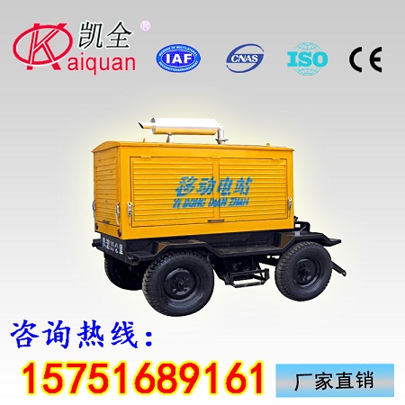 移動電站為野外施工作業單位而設計的移動電源。它的罩殼采用優質鍍鋅板制作而成,具有耐腐蝕、密封程度好等特點,四面窗門采用自動液壓支撐,開啟方便,底盤車輪根據用戶需要,可設計成兩輪、四輪、六輪、并設計有手動、自動、氣動以及慣性制動剎車裝置,制動可靠平穩,是各野外施工單位理想的移動電源