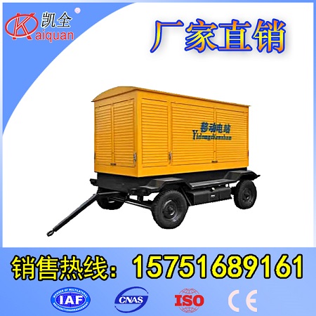 移動電站為野外施工作業單位而設計的移動電源。它的罩殼采用優質鍍鋅板制作而成,具有耐腐蝕、密封程度好等特點,四面窗門采用自動液壓支撐,開啟方便,底盤車輪根據用戶需要,可設計成兩輪、四輪、六輪、并設計有手動、自動、氣動以及慣性制動剎車裝置,制動可靠平穩,是各野外施工單位理想的移動電源