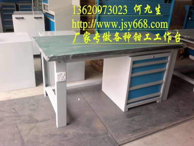 1、 組裝型的鉗工臺工作桌類,桌腳和桌架及桌面之間為螺絲鏈接組成。