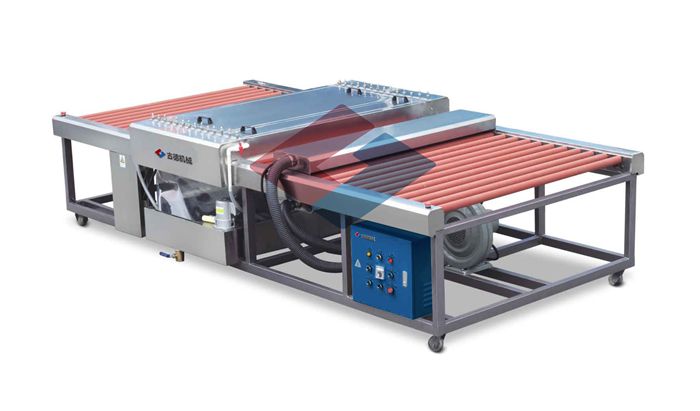 該設(shè)備利用滾筒傳輸把玻璃送入清洗室,經(jīng)過(guò)四組毛刷棒循環(huán)水清洗,把玻璃清洗干凈,再采用三組海綿棒把玻璃表面的水珠吸掉(去水),再進(jìn)入強(qiáng)力熱吹風(fēng)烘干系統(tǒng)干燥,玻璃加工完成。溫度控制可根據(jù)需要來(lái)調(diào)整,輸送帶采用密滾筒無(wú)級(jí)變速器帶動(dòng),清洗速度可在加工過(guò)程中任意調(diào)整,循環(huán)水清洗玻璃一次完成。